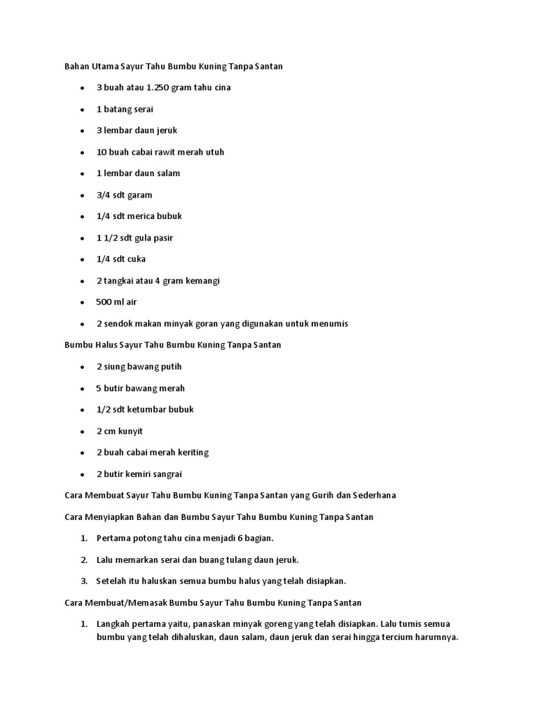Kumpulan Resep Asli Indonesia Terik Tahu Tempe from lestariweb.com Tahu sudah di goreng•wartel•tauge (sesuai selera)•sawi putih•tomat (potong dadu)•kacang panjang•bumbu halus tahu kuah kuning non santan. Gulai ayam tanpa santan rasa gurih kaldunya terasa banget #31. Termasuk bedanya tahu putih dan tahu kuning, sudah tahu? Tanpa santan | cara mudah membuat opor ayam lebaran rendah kolesterol. Nasi kuning tanpa santan yang dibuat kali ini bisa digunakan untuk ulang tahun, tumpeng atau bahkan dijual. Pindah pada tempat saji, ikan tuna bumbu kuning tanpa santansiap untuk disajikan. 3 butir telur rebus yg dikupas dan disayat2 5 kotak tahu putih 1 papan tempe yg. Nonton dulu baru komeng, gan!